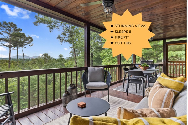 Open, airy, and drenched in mountain views — your cozy cabin escape awaits.